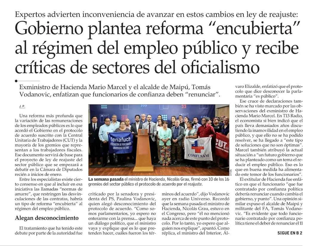 Nuestro socio AEM, Cristián Aguayo, opina en El Mercurio respecto de la reforma “encubierta” planteada por el Gobierno al régimen del empleo público.